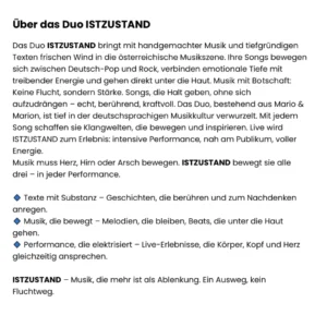 Willkommen im Downloadbereich! Hier findest du alles, was du über die Band brauchst – Pressefotos, Logos, Biografien und vieles mehr. Stöbere durch die Inhalte, lade herunter und erfahre alles Wissenswerte rund um uns. Viel Spaß beim Entdecken!