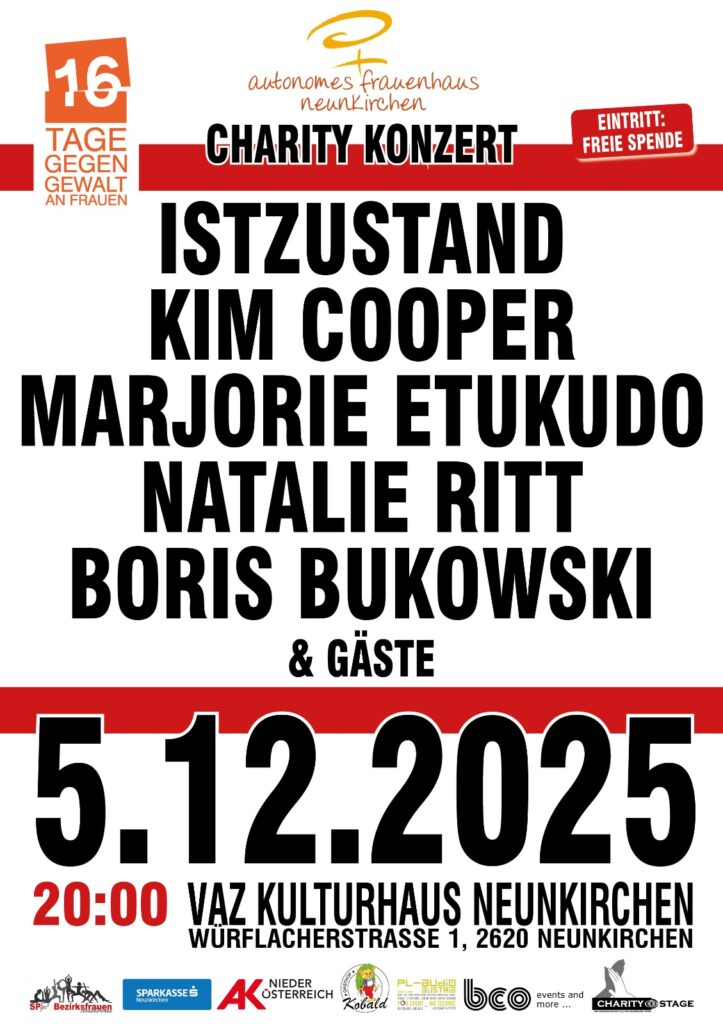 Am 5.12.2025 wird das VAZ Kulturhaus Neunkirchen zum Schauplatz eines besonderen Charity Konzerts im Rahmen der Kampagne „16 Tage gegen Gewalt an Frauen“.